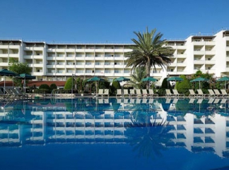 остров Родос, Гърция http://bluebaybeach.gr/Welcome.html Хотел Блу Бей Бийч се намира на 10 км. от гр. Родос, на 3 км. от градчето Ялисос. Комплексът е разположен на западното крайбрежие на острова, на плажа. Реновиран през 2006 г. В хотела: 244 стаи, с изглед парк или море и 44 луксозни бунгала, 6 басейна, детски басейни, 3 ресторанта, 5 бара, амфитеатър, аква парк с пиратски кораб, спортен център, спа център, тенис корт, тенис на маса, детска площадка, детски клуб и магазини. В стаите: Двойни стаи - с изглед море или парк; балкон, баня/душ, сешоар, климатик, сателитна телевизия, телефон, мини бар. Полупансион програмата включва: