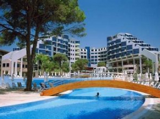 Белек,Анталия Местоположение Хотелът е разположен в Белек, на 48 км от центъра на Анталия и на 38 км от летището. В стаите Всички стаи са с балкон или тераса,изглед към морето или градината, баня с вана, сешоар, A / C, директен телефон,сейф, мини-бар, сателитна телевизия, музикални канали и безплатна интернет връзка. Сградата в градината е с 48 стандартни стаи, 24 свързани стаи (до 4 души), с изглед към градината и същите удобства, както в стаите на хотела. Хотелът разполага с 80 малки апартамента Villa (50m2 площ, дневна и спалня, и баня с джакузи, за максимум 3 човека), 8 Deluxe Suite с изглед към морето (100 м, хол, спалня, баня, душ и джакузи) и 2 Grand Deluxe апартамента за 4-7 човека (120 кв.м, хол, спалня, баня и джакузи). В хотела Основен ресторант с отворен бюфет Хедера и Корнелиус, А ла карт ресторанти/ италиански, средиземноморски, интернационален, турски и азиатски/, барбекю три пъти седмици в градината, алкохолни и безалкохолни напитки във всички барове в рамките на хотелския комплекс, джакузи,здравен център и център за красота, масаж и турска баня. Плащат се: магазини, фризьорски салон, Уелнес център и медицински кабинет, пране и интернет кафе. Спорт и развлечения Фитнес зала, тенис корт, тенис на маса, волейбол, баскетбол, плажен волейбол, стена за катерене и немоторни спортове, всички безплатно. С плащане са: тенис корт на осветление, тенис екипировка и тенис уроци, боулинг, голф и моторни водни спортове.Анимации през деня,вечерни шоу програми, парти в градината и компютърни игри. Басейн Хотелът разполага с открит и закрит басейн. За децата Детска площадка , детски пързалки, басейни, мини-клуб за деца от 4-12 години. Детегледачка (при поискване). Плаж Хотелът разполага със собствен плаж, пясъчен.Бар на плажа.Чадъри, шезлонги и матраци безплатно. Partial View DLAI