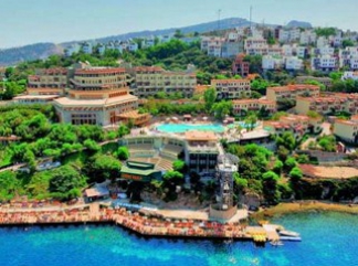 Бодрум, Турция Разположение: Хотелът е разположен на 45 км от летището и на 25 км от центъра на гр. Бодрум, на 1,5 км от местността Гюндоан, на брега на морето. Построен през 1995 година, реновиран през 2006 год. В стаите: Вана/ душ, сешоар, индивидуален климатик, телевизор, телефон, мини бар (в деня на пристигане вода безплатно), сейф (платено), балкон (не навсякаде), почистване на стаите – всеки ден, смяна на спално бельо – 3 пъти седмично. На територията на хотела: Хотелът се състои от една 7 етажна основна сграда и четиринадесет 2- и 3-етажни вили – клуб. Хотел: 160 стандартни стаи (макс. 3 чов., 25 кв.м.), 6 двустайни суита (две спални с врата, 40 кв.м.). Клуб: 273 стандартни стаи (от тях 14 свързани с врата, макс. 3 чов., 25 кв. м. ), 2 основни ресторанта, 3 ресторанта a-ла- карт, 7 бара, 4 открити басейна, закрит басейн, 3 водни пързалки, лекарски кабинет, фризьорски салон, магазини, химическо чистене. Безплатни услуги: турска баня, сауна, парна баня, фитнес зала, аеробика, мини футбол, 3 тенис корта (през деня), тенис на маса, дартс, мини голф. Платени услуги: интернет кафе, водни видове спорт, безжичен интернет (в лоби).ПЛАЖ: Собствен- чакълест, платформа, кей, бар на плажа- безплатно. На басейна и на плажа: чадъри, шезлонги, матраци – безплатно,плажни кърпи- безплатно. Хранене: All Inclusive, закуска, обяд, вечеря на шведска маса, следобедна закуска, алкохолни и безалкохолни напитки местно производство без лимит. Family Club Room AI