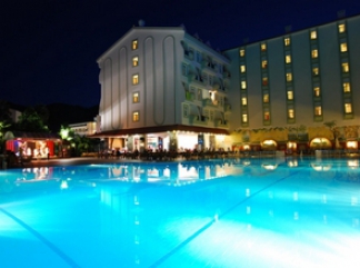 Мармарис, Турция Разположение: На 90 км. от летището в гр. Даламан, 3 км от центъра на Мармарис, на брега на морето, със собствен пясъчен плаж. Хотелът се състои от два шестетажни корпуса, изградени през 1995 и съответно 1996 г., реновиран - 2009 г. В стаите: Баня с вана или душ, индивидуален климатик, телефон, телевизор, сейф (срещу заплащане), мини бар (срещу заплащане) сешоар, балкон , почистване на стаите - всеки ден, смяна на бельото – 3 пъти в седмицата. На територията на хотела: 426 стандартни и делукс стаи (25 кв.м., макс. 3 ч.), 10 фамилни стаи (28 кв.м., макс. 4 ч.), 5 бара. Хранене: All inclusive - закуска, обяд, вечеря, междинни закуски и хранения, местни алкохолни и безалкохолни напитки; основен ресторант (шведска маса). Развлечения и спорт: Безплатни услуги: 2 открити басейна, водна пързалка, детски басейн, детска площадка, детски бюфет, тенис на маса, дартс, фитнес, аеробика, водна гимнастика, джакузи, турска баня, сауна, парна баня, шоу програми, безжичен интернет в лоби бар, трансфер в 23:00 до barstreet (улицата с баровете). Допълнително се заплаща: козметик, масаж, пилинг, билярд, лекарски кабинет, водни спортове, интернет, детегледачка, коли под наем, 4 магазина, пералня, химическо чистене. Плаж: Собствен - пясъчен. Чадъри, шезлонги, матраци на плажа и на басейна – безплатно. Standard AI