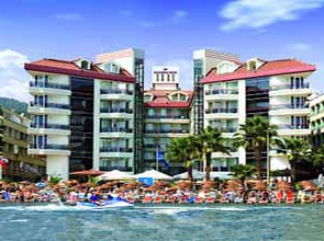 Мармарис, Турция Разположение: Мармарис, на 1.5 км. от центъра, на брега на морето, собствен плаж. В стаите: Централен климатик, телефон, телевизор, мини-бар, баня с душ, сешоар, балкон / не във всички стаи/ На територията на хотела: Ресторант, 2 бара, открит и закрит басейн, детски басейн, фитнес, сауна, масаж, волейбол, джакузи, лекар. Хранене: закуска и вечеря на шведска маса. Плаж: собствен плаж Land View HB